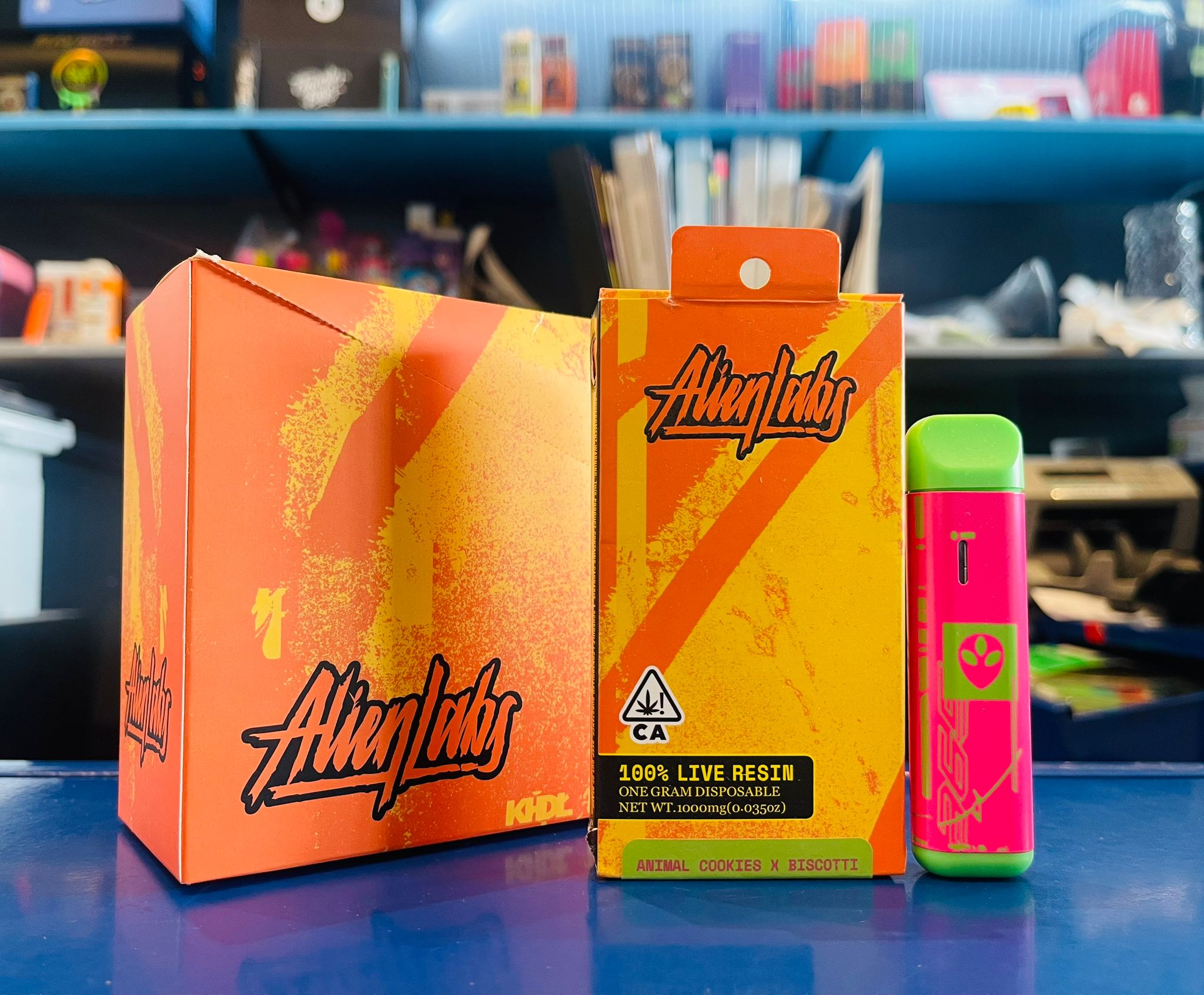 - Crafted with an otherworldly experience in mind – Alien Labs has elevated its popular disposable vape hardware to last longer and give you bigger clouds. Made with a ceramic coil specifically formulated to superheat live resin at the perfect temperature and an angled reservoir to ensure you get to smoke every last drop of oil. The live resin inside is of the highest possible quality, made from the fresh-frozen top-shelf flower that Alien Labs is known for.
