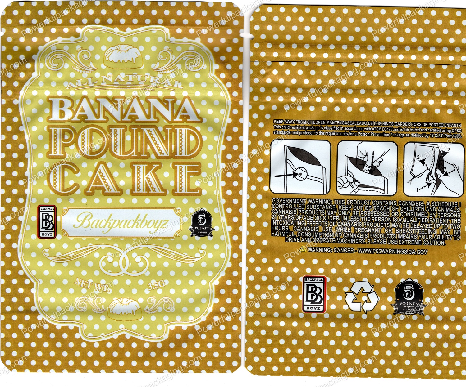 BACKPACK BOYZ : Banana Pound Cake (4.25×6.5in) Packaging 3.5 Mylar Bag