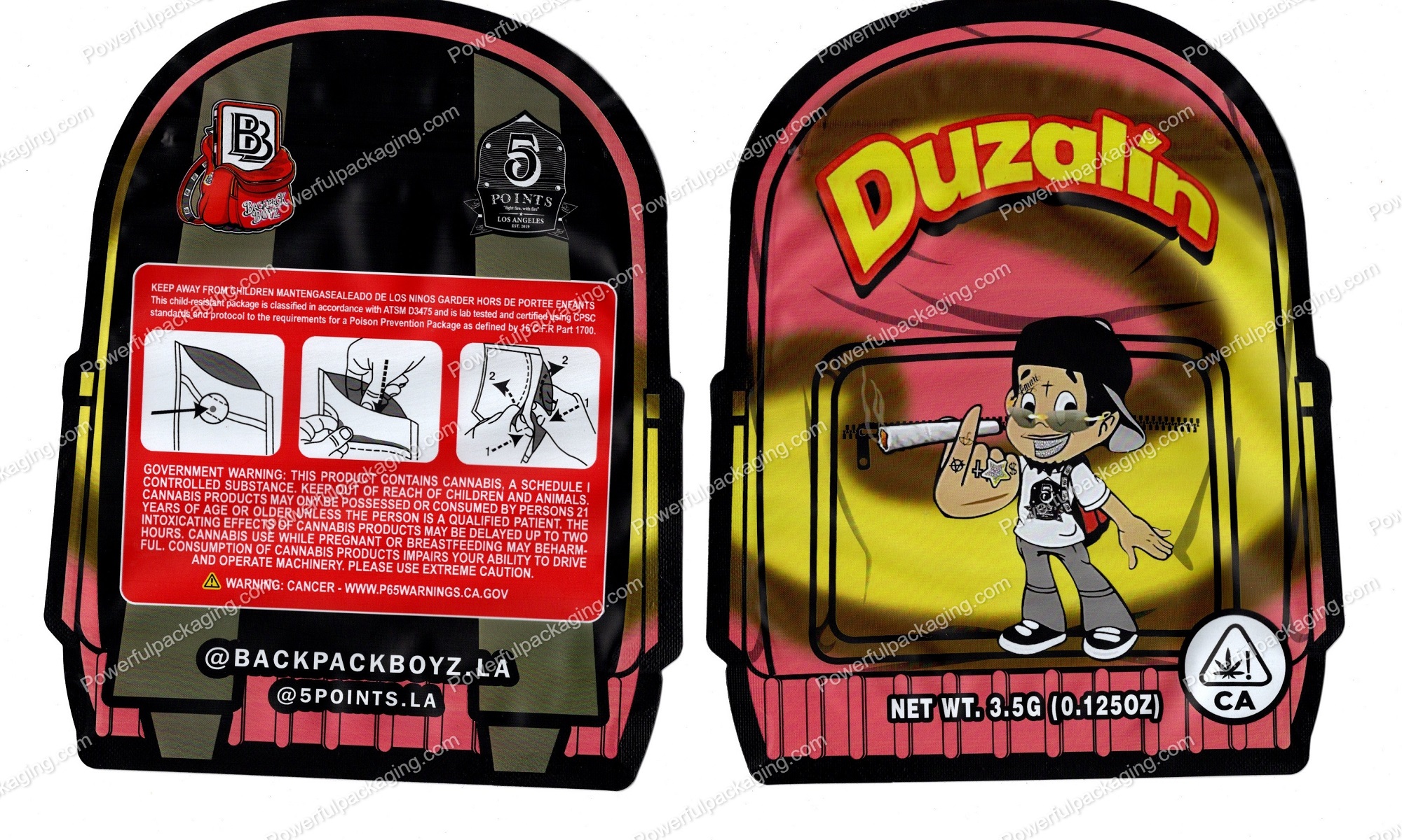 BackPack Boyz : Duzalin 3D Mylar Backpack Shaped Bag 3.5g Flower Packaging