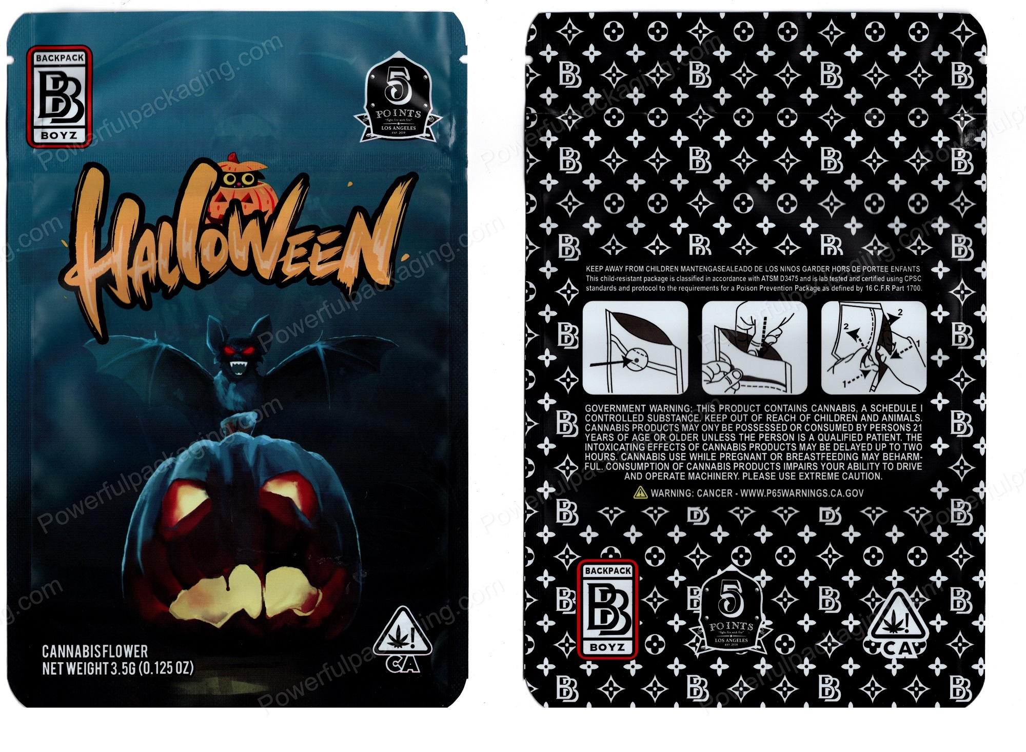 BACKPACK BOYZ : Halloween Pumpkin Packaging 3.5 Mylar Bag *Empty Bags*