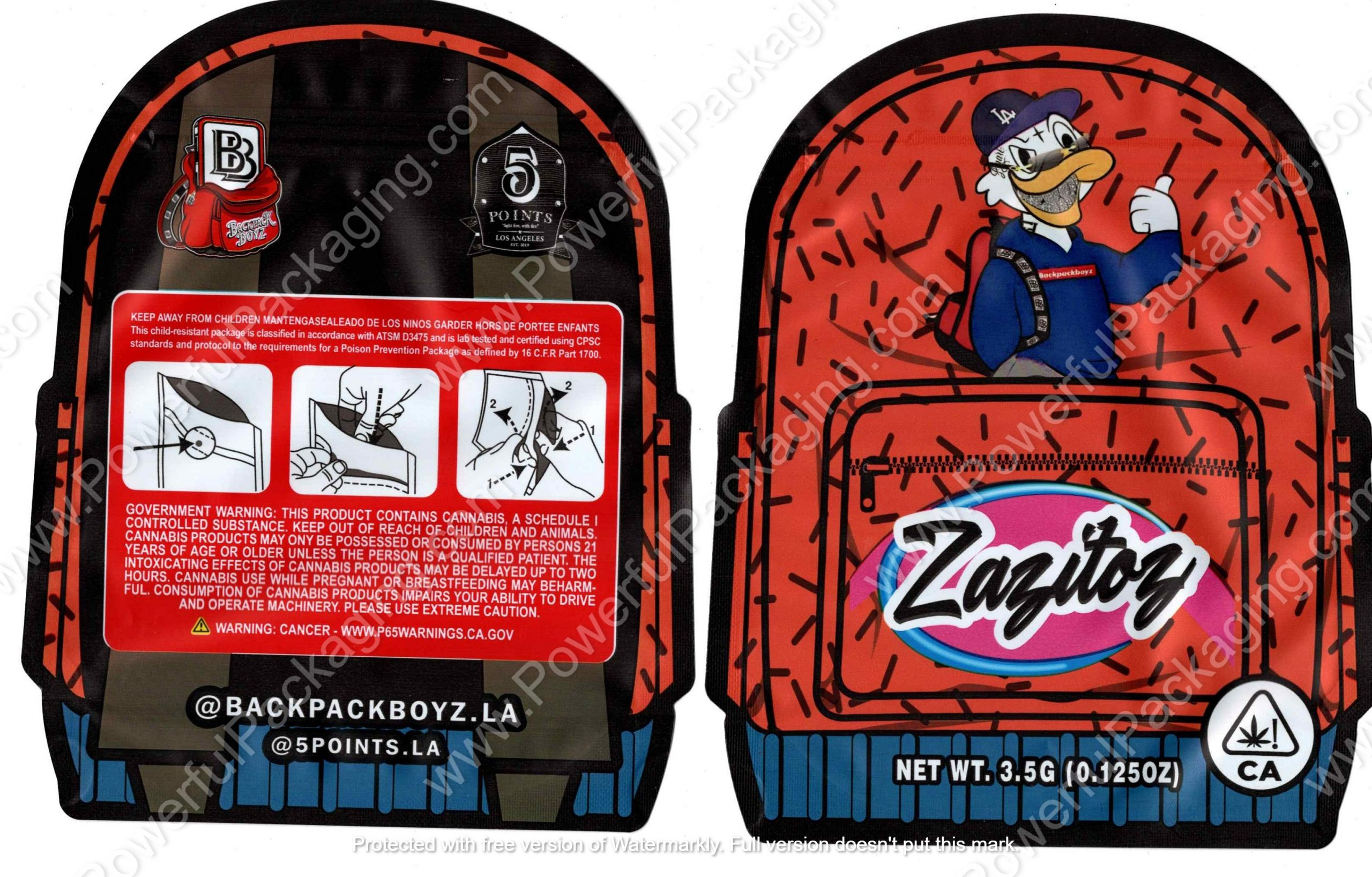 BACKPACK BOYZ : Zazitos Packaging 3.5 Mylar Bag