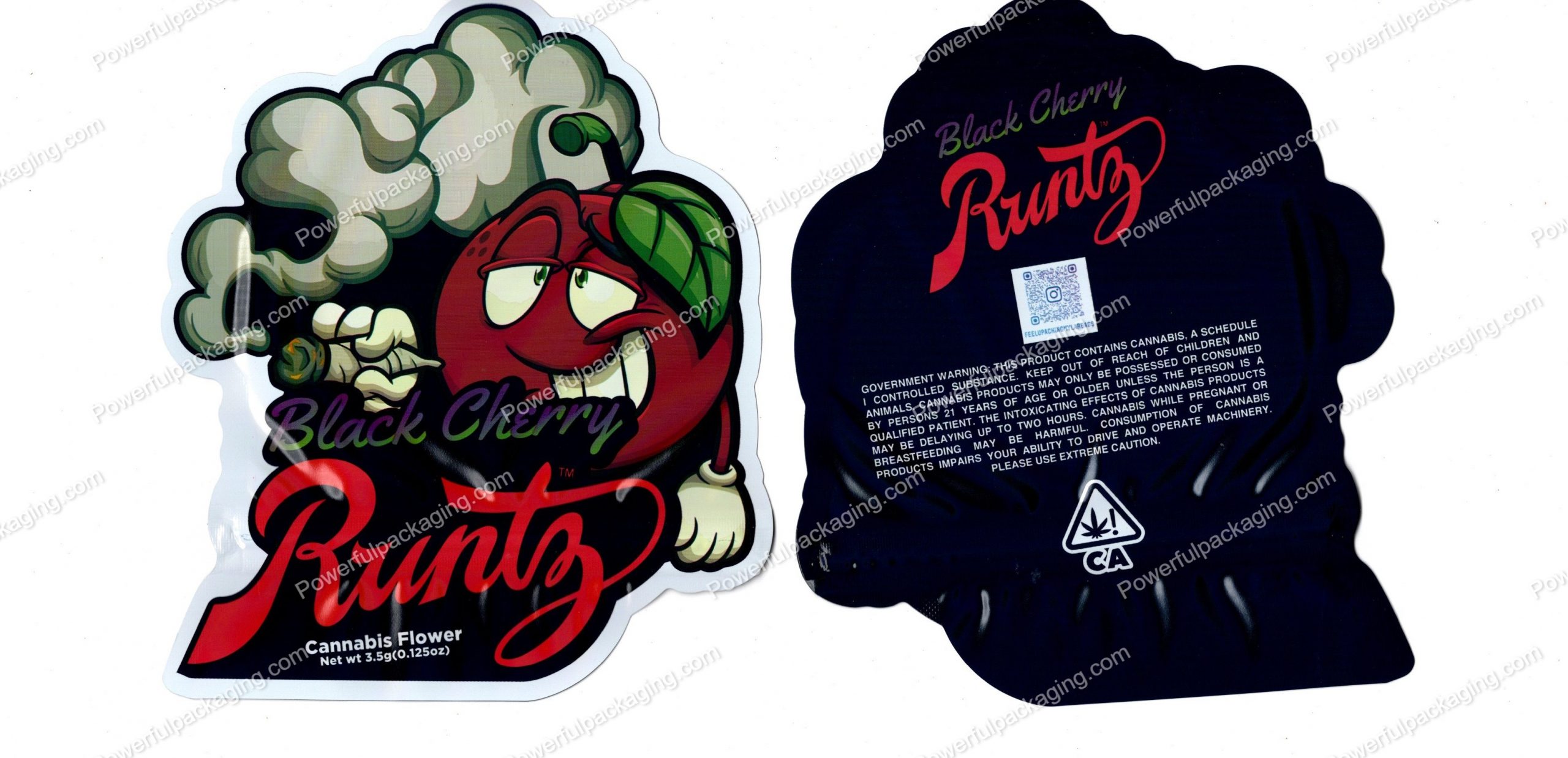 Black Cherry Runtz 3D Mylar Shaped Bag 3.5g Flower Packaging
