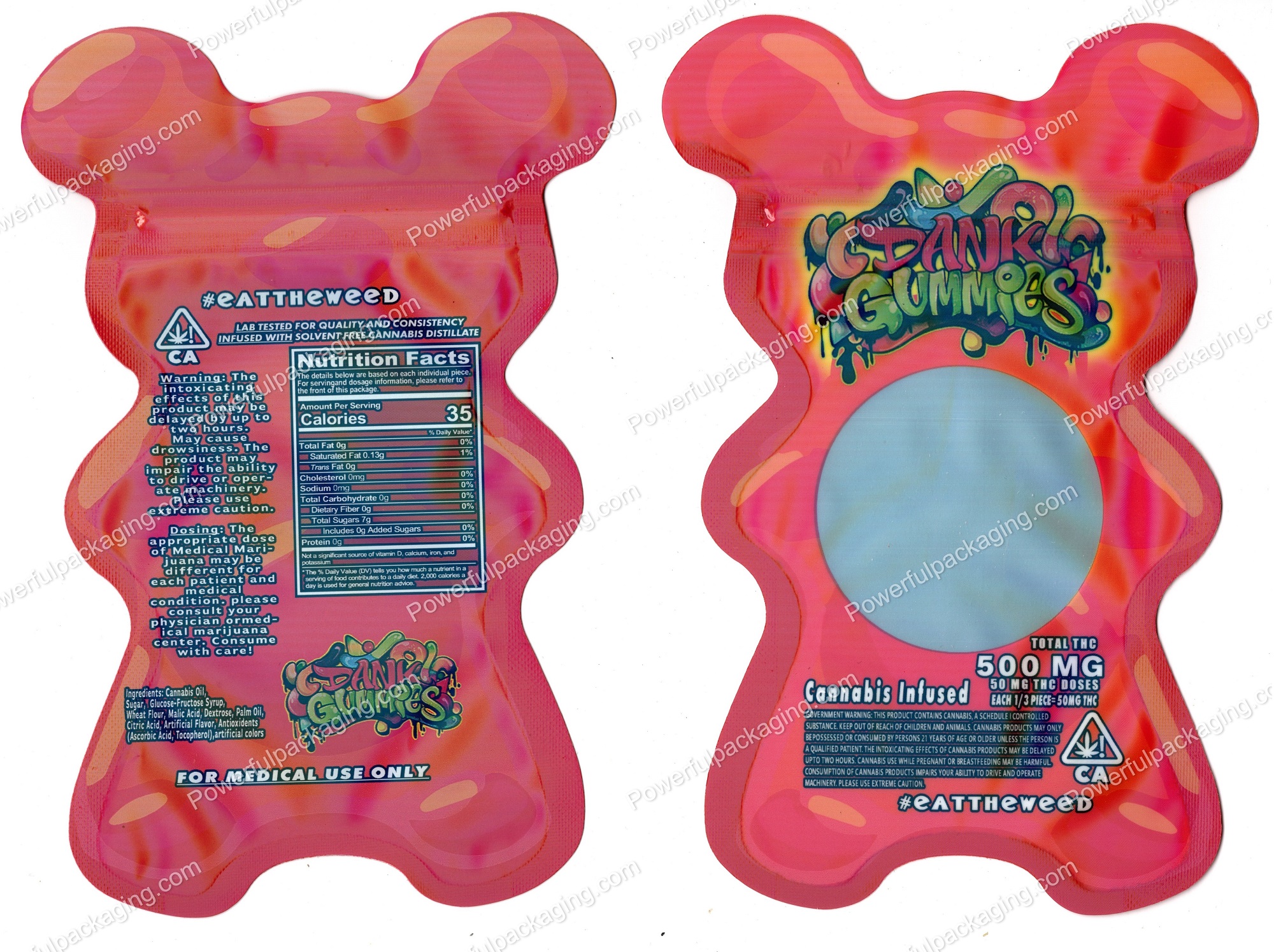 Dank Gummies Red 3D Bear 500mg Mylar Shaped Edible Packaging