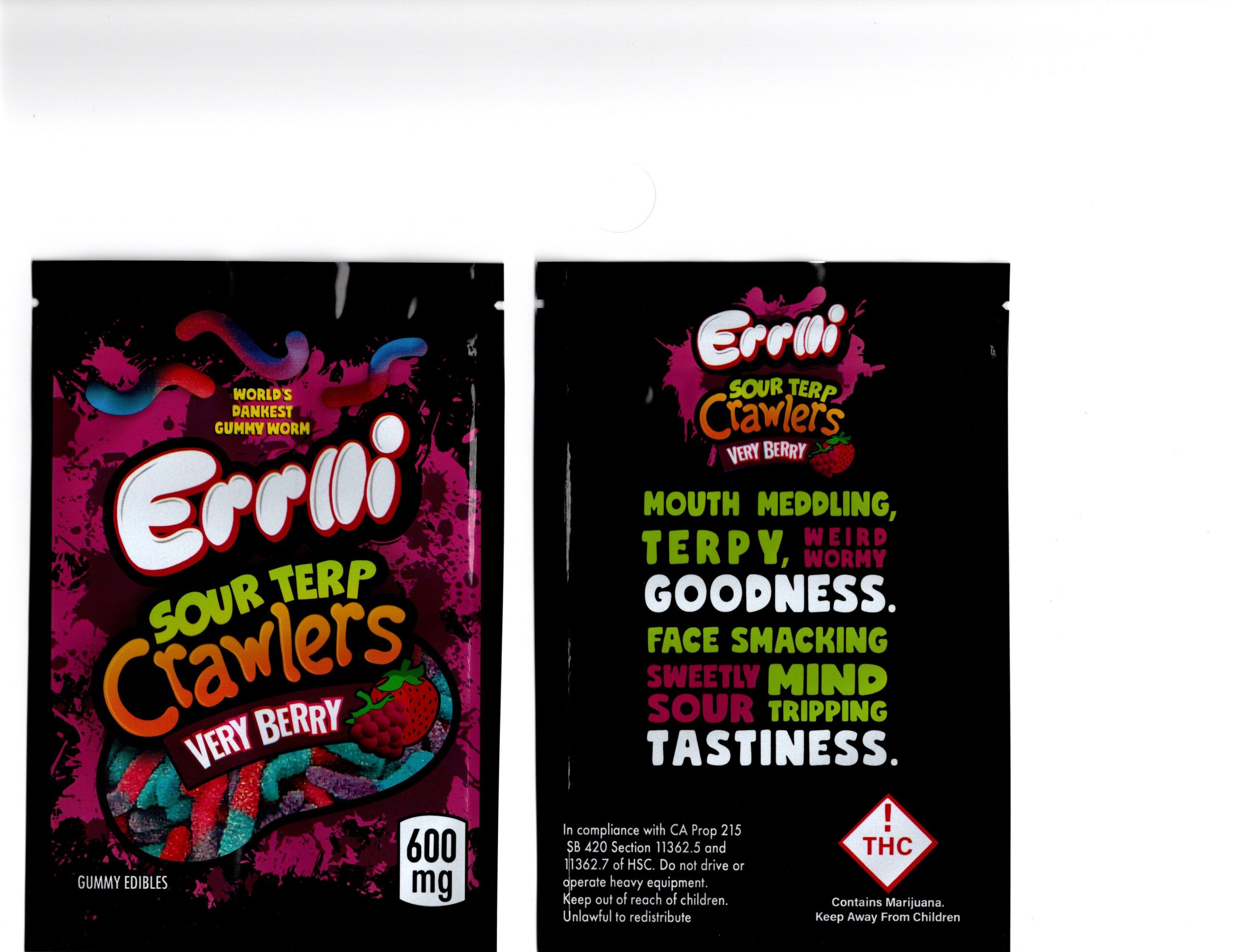 Errlli Sour Crawlers Very Berry Smell Proof Food Grade EMPTY Mylar Bags Dry Goods Herbs Candy Edibles