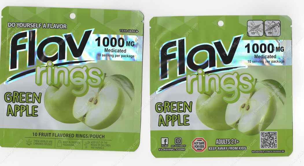 Green Apple Rings Flav Mylar Bag Edibles Packaging *Empty Bags* (B3)