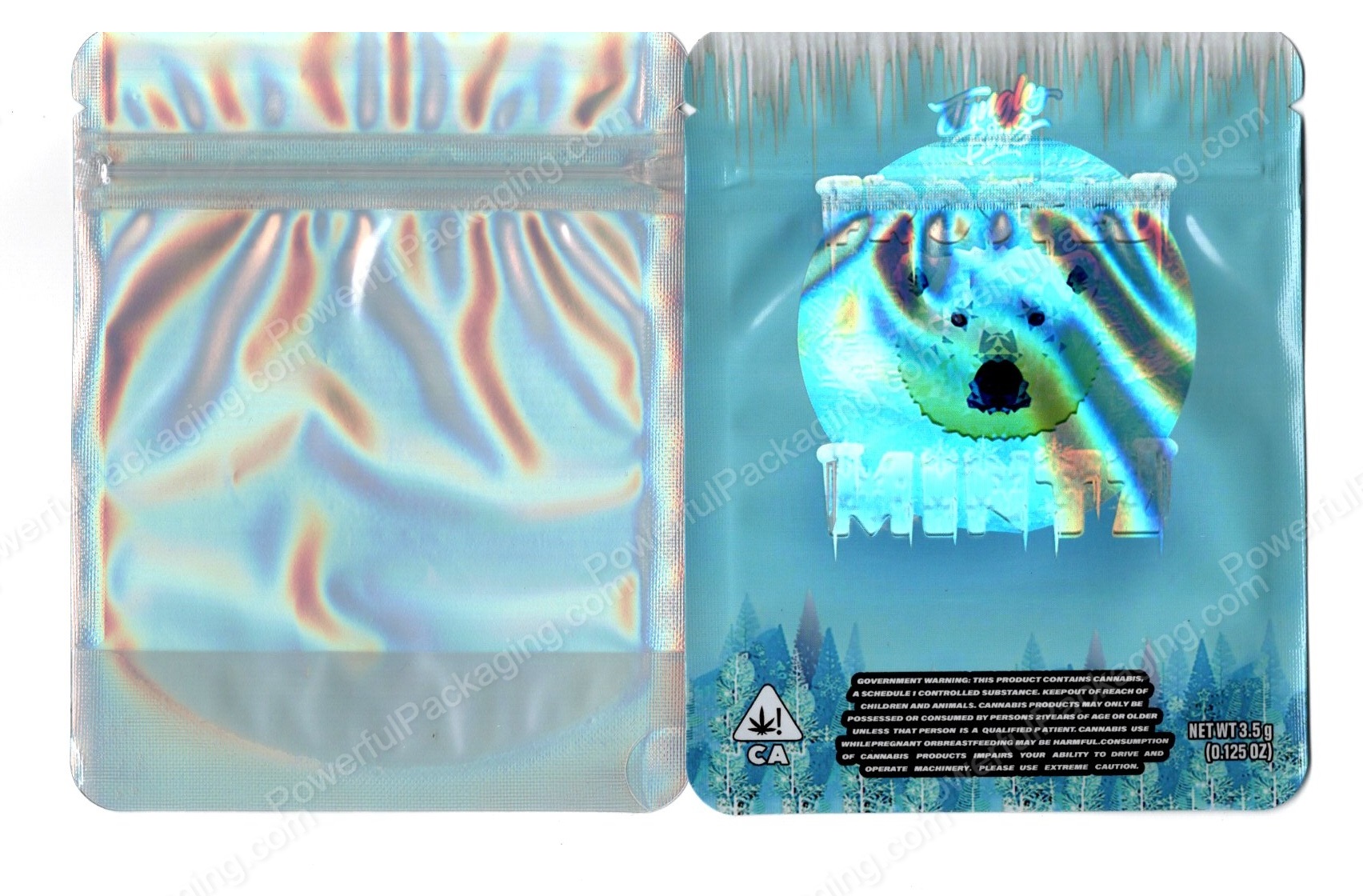 Jungle Boys Frosted Mintz Holographic Generic Flower Packaging 3.5 Mylar Window Bag