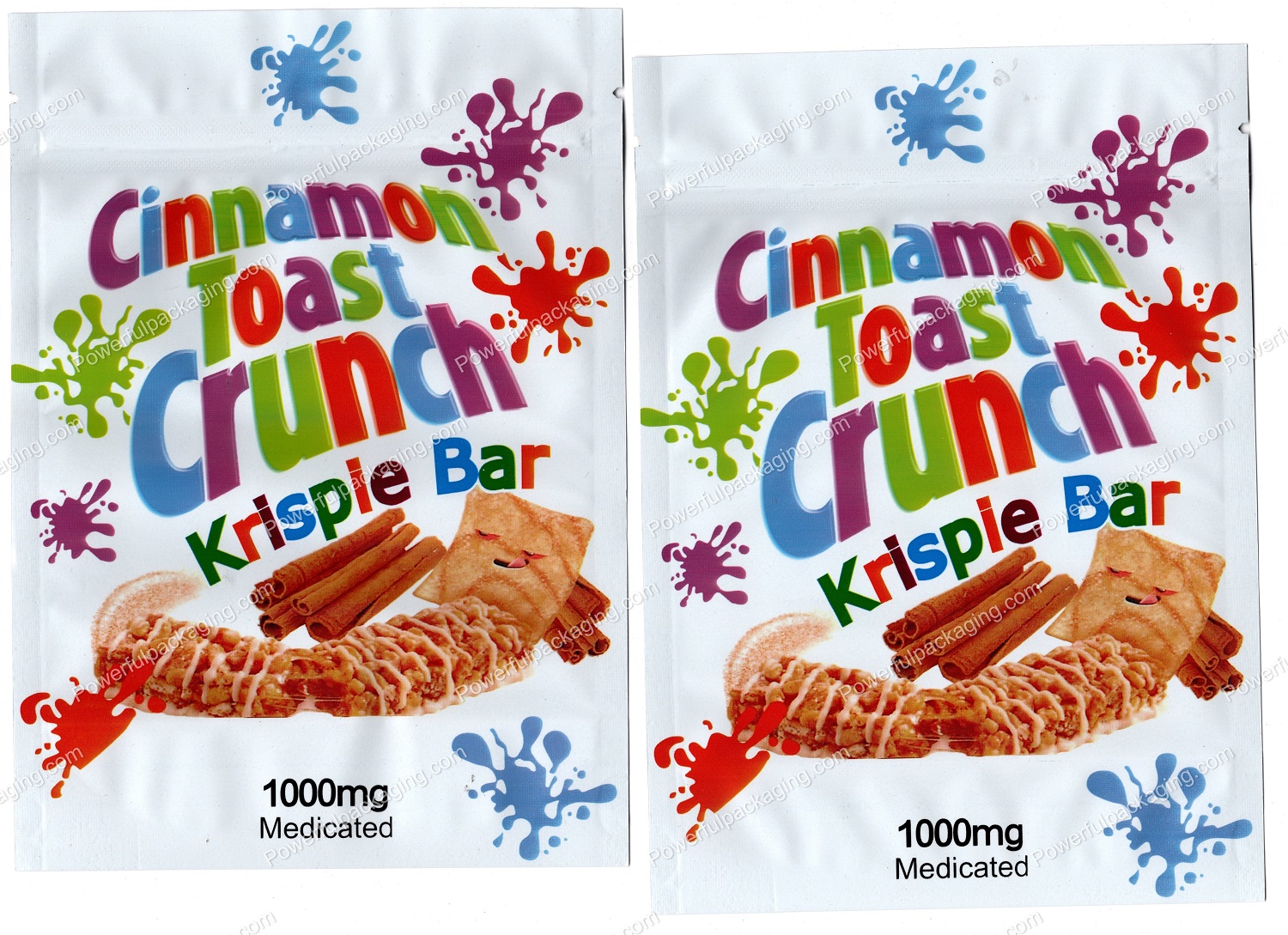Large Cereal Kirspie Bar : Cinnamon Toast Crunch 1000mg Packaging (5x7in) Mylar Bag