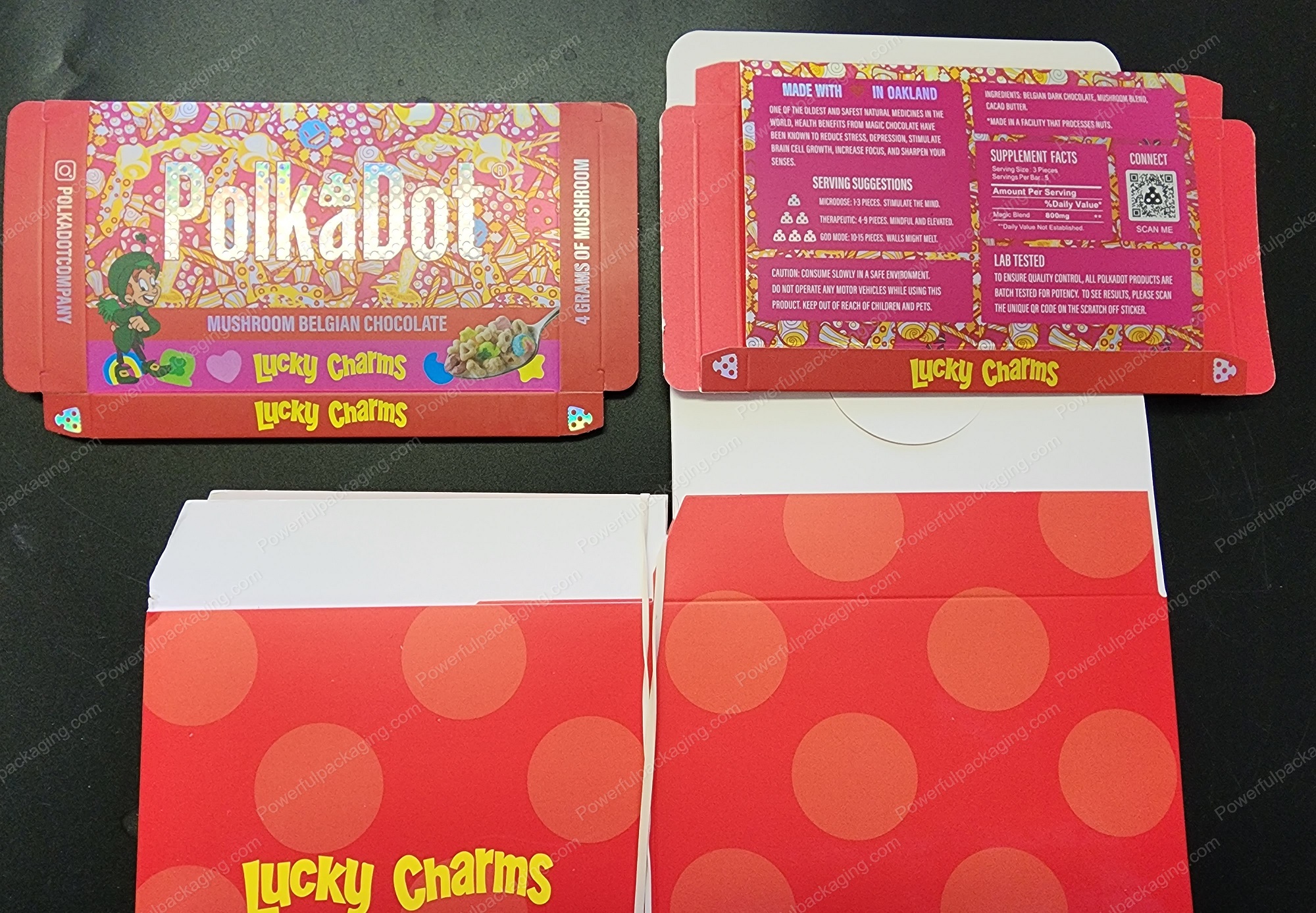 Large PolkaDot Magic Mushroom Belgain Chocolate : Lucky Charms 4g 10-Pack with Master Case and Sleeve (5.5×3.5in)