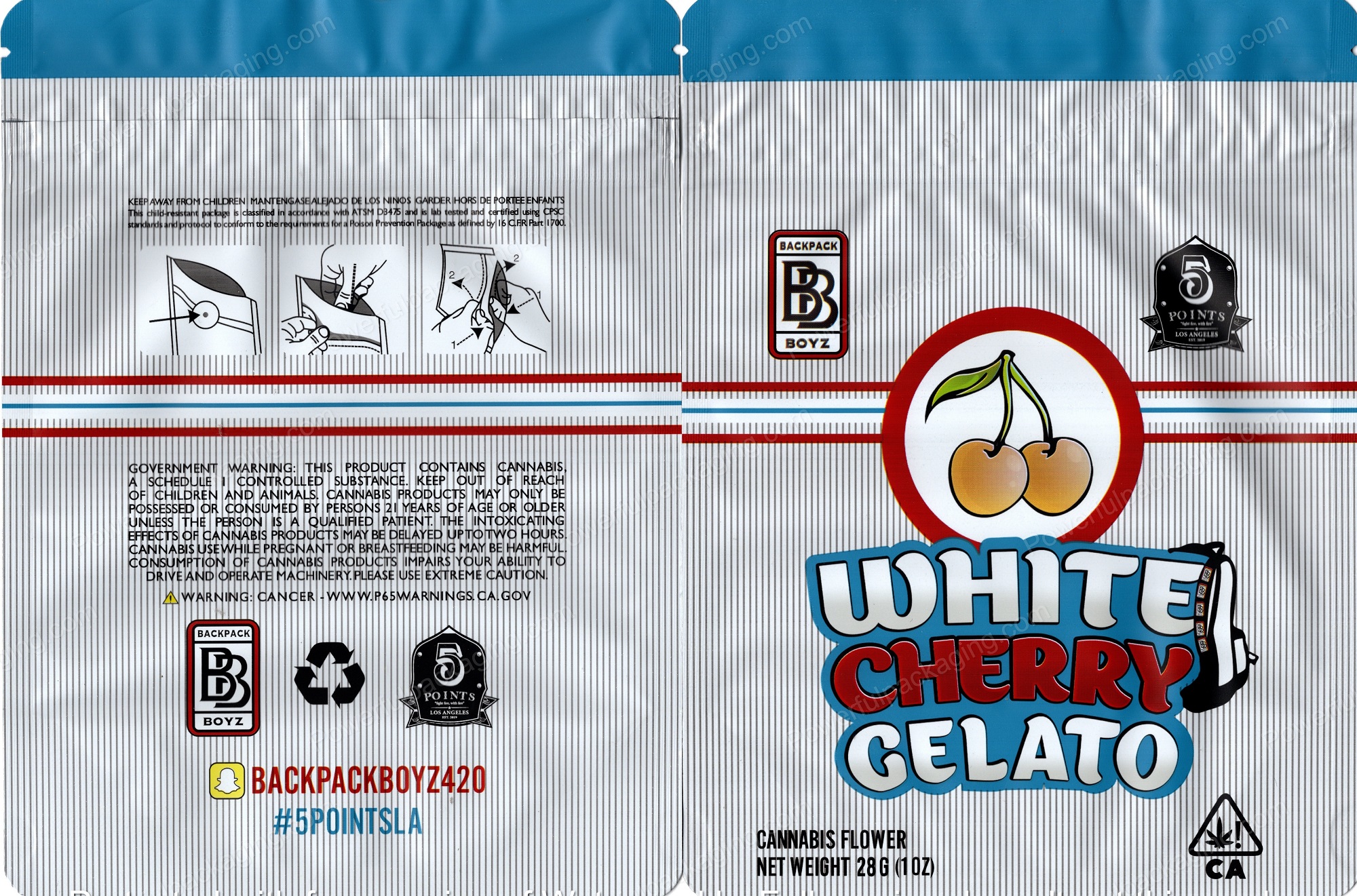 Ounce Bags : (BackPack Boyz : White Cherry Gelato) Mylar 28g Bag