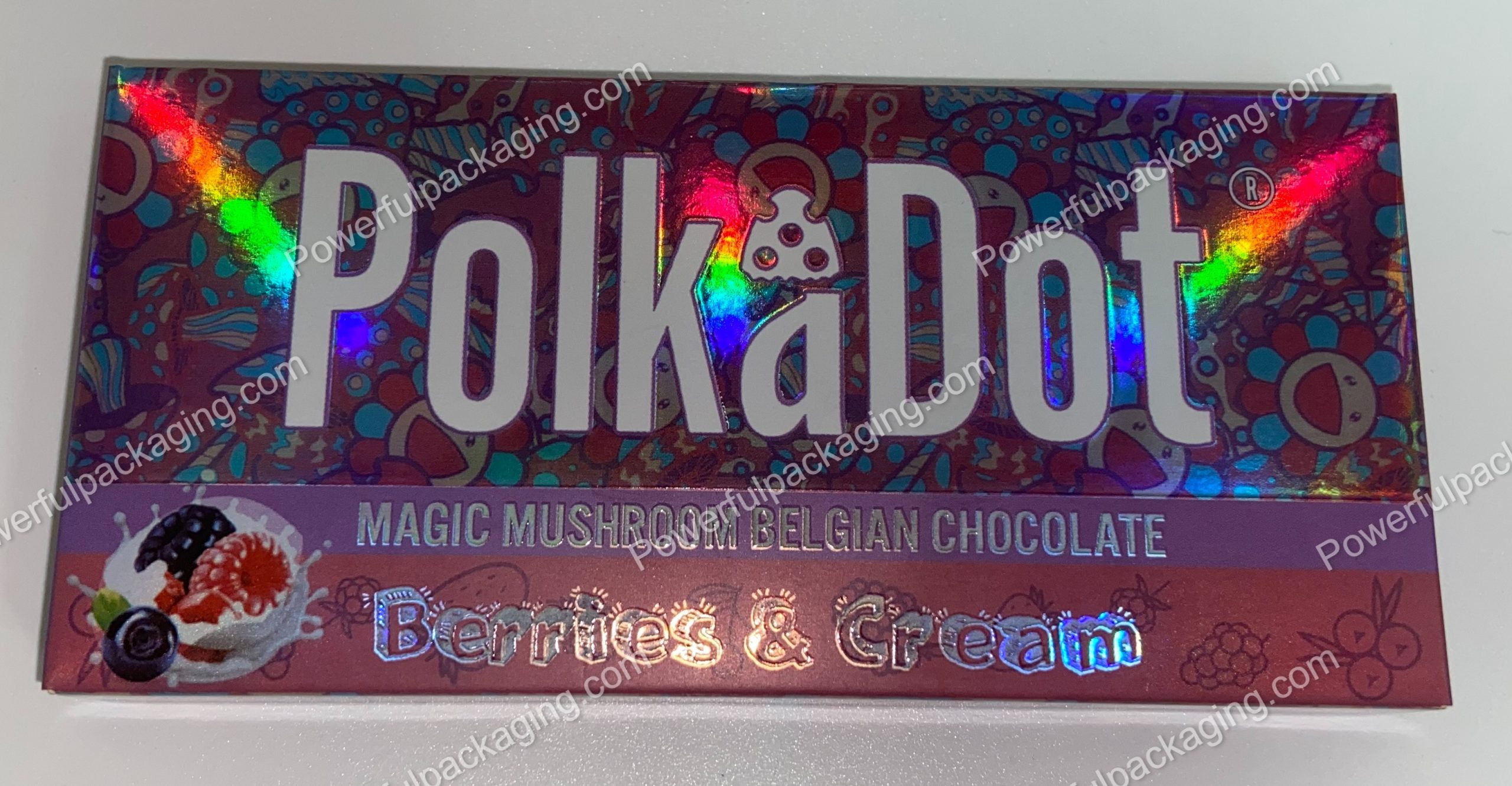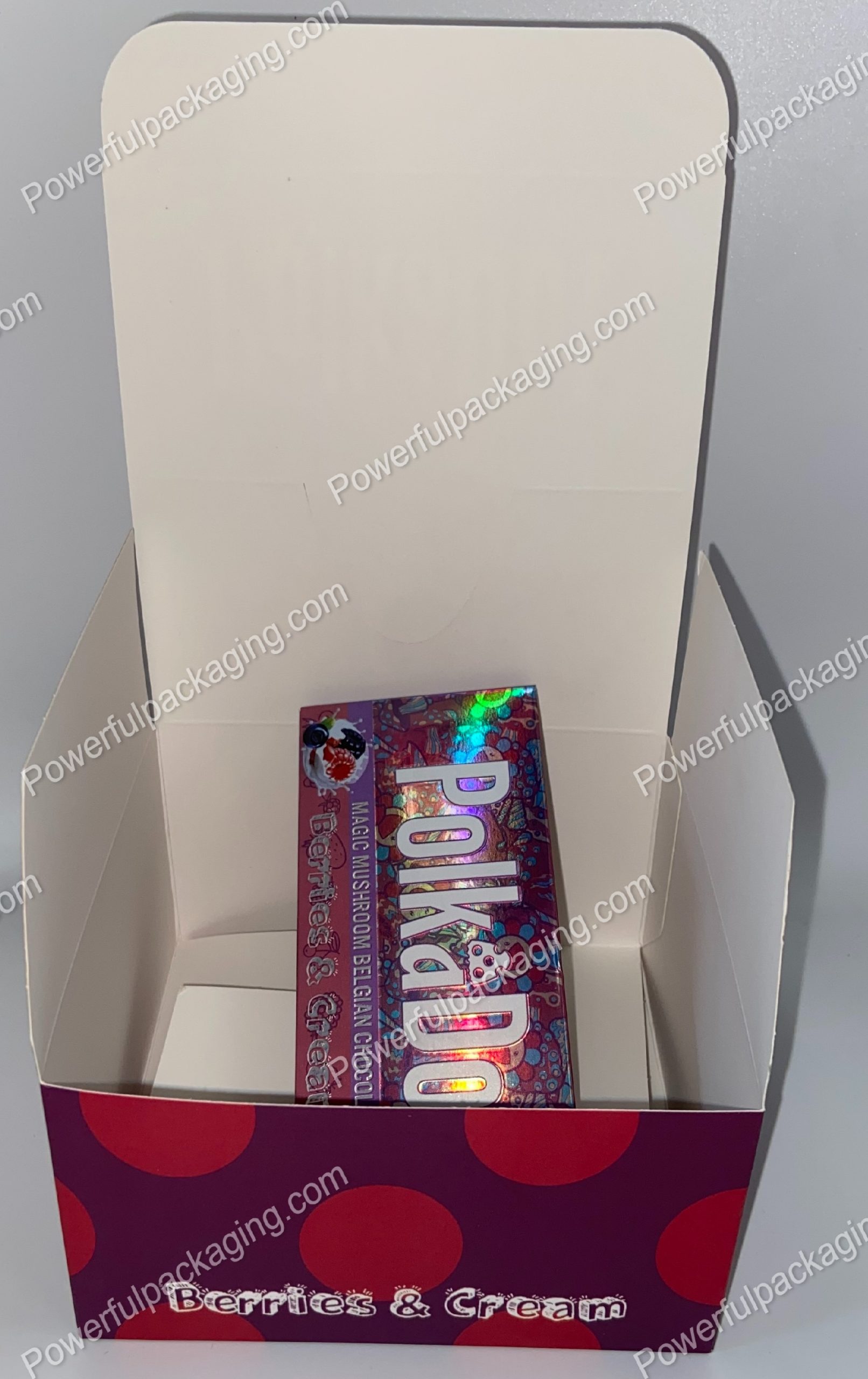 PolkaDot Magic Mushroom Belgain Chocolate : Berries & Cream 4g 10-Pack with Display Case (5×2.5in)