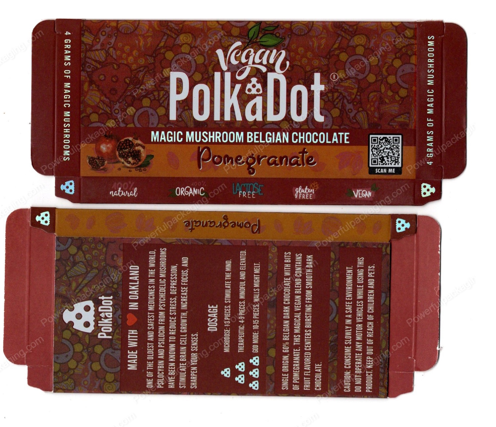 PolkaDot Magic Mushroom Belgain Chocolate : Pomegranate Vegan 4g 10-Pack with Master Case (5×2.5in)