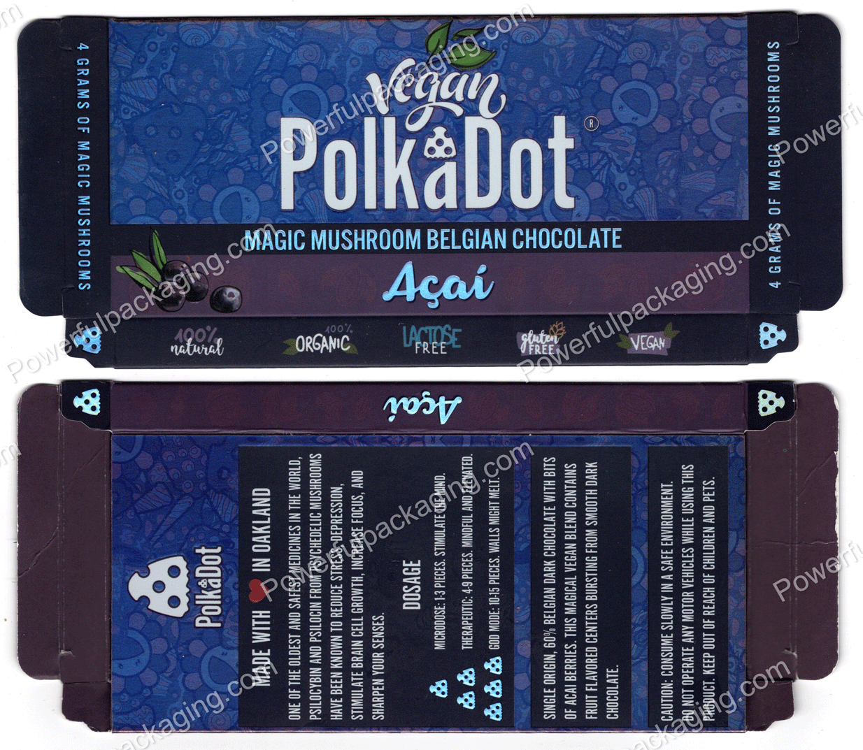 PolkaDot Magic Mushroom Belgain Chocolate : Vegan Acai 4g 10-Pack with Display Case (5×2.5in)