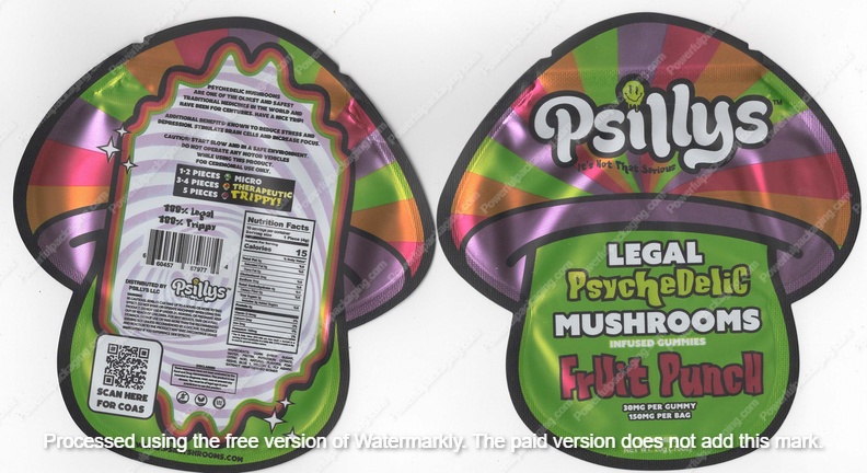 Psillys Mushrooms Fruit Punch Gummies 150 Mg Per Bag Edible Mushroom Packaging *Empty Packaging* (CaSupply)
