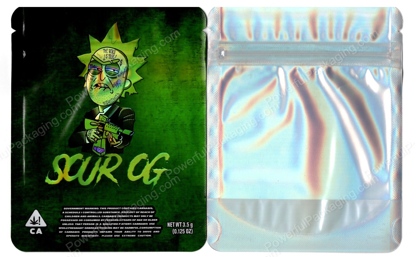Rick & Morty Sour OG Holographic Generic Flower Packaging 3.5 Mylar Window Bag *Empty Bags*