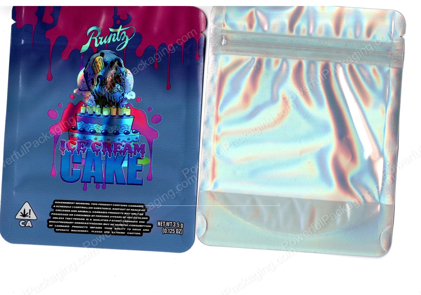 Runtz Ice Cream Cake Holographic Generic Flower Packaging 3.5 Mylar Window Bag