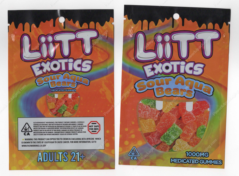 Sour Aqua Bears Gummies Liitt Exotics Mylar Bag Edibles Packaging *Empty Bags* (B3)
