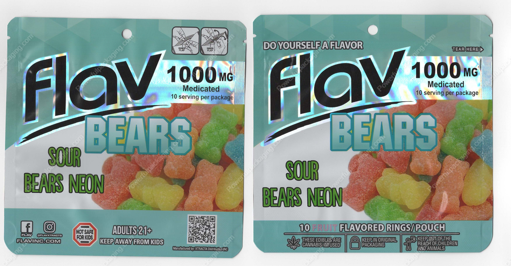 Sour Bears Neon Flav Mylar Bag Edibles Packaging *Empty Bags* (B3)