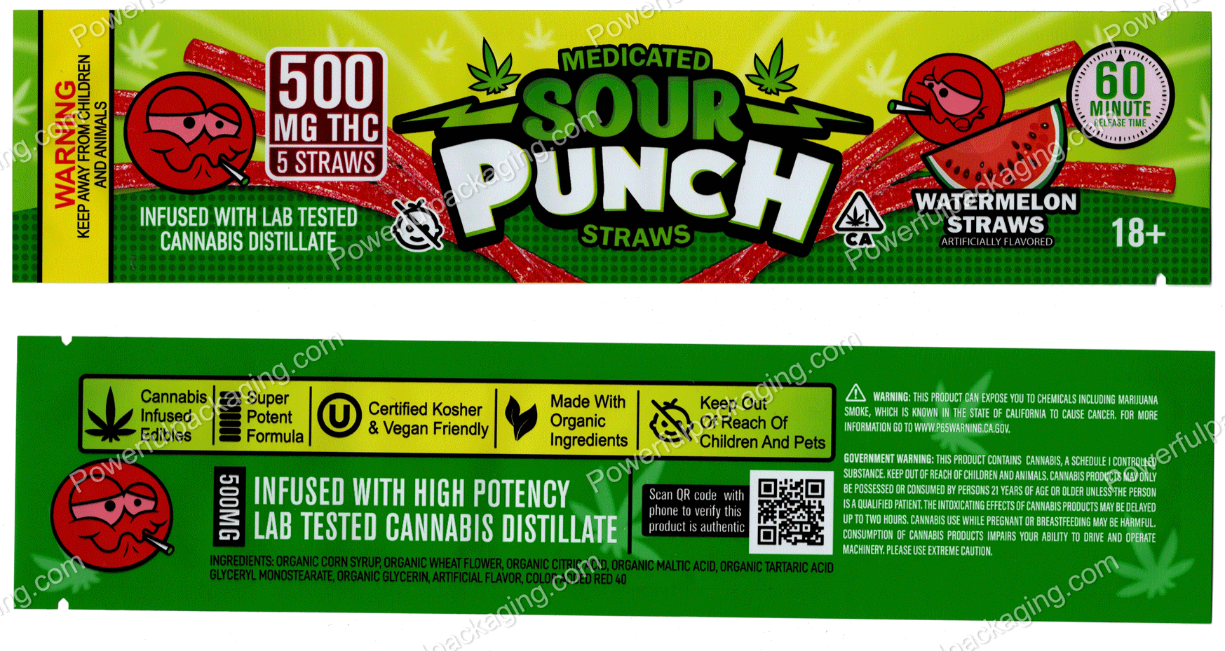 Sour Punch Straws : Watermelon (2×9.5in) Bag *Empty Bags* (CaSupply) #E1