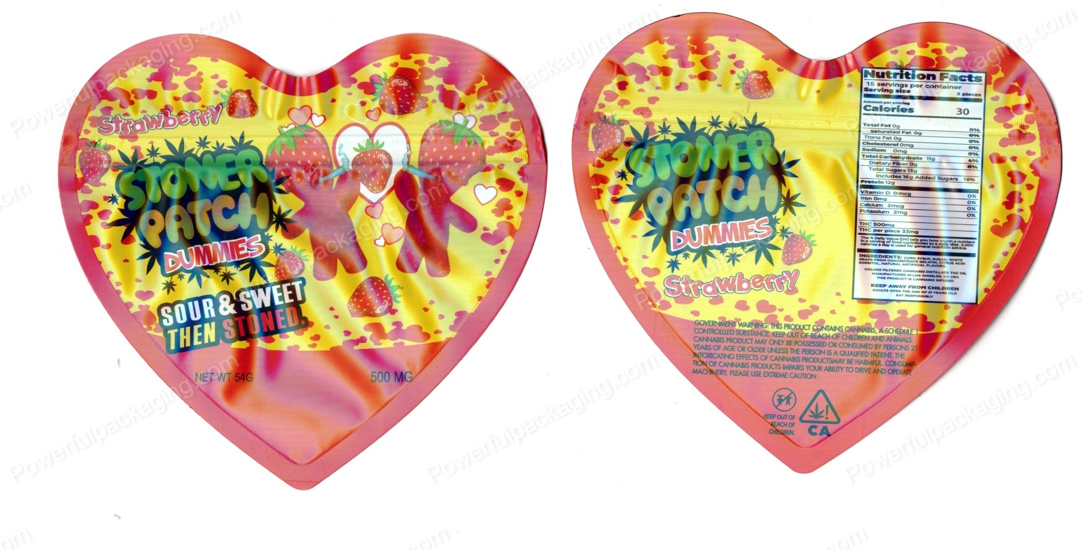 Stoney Stoner Patch Strawberry Dummies 3D Heart Shaped Mylar Packaging