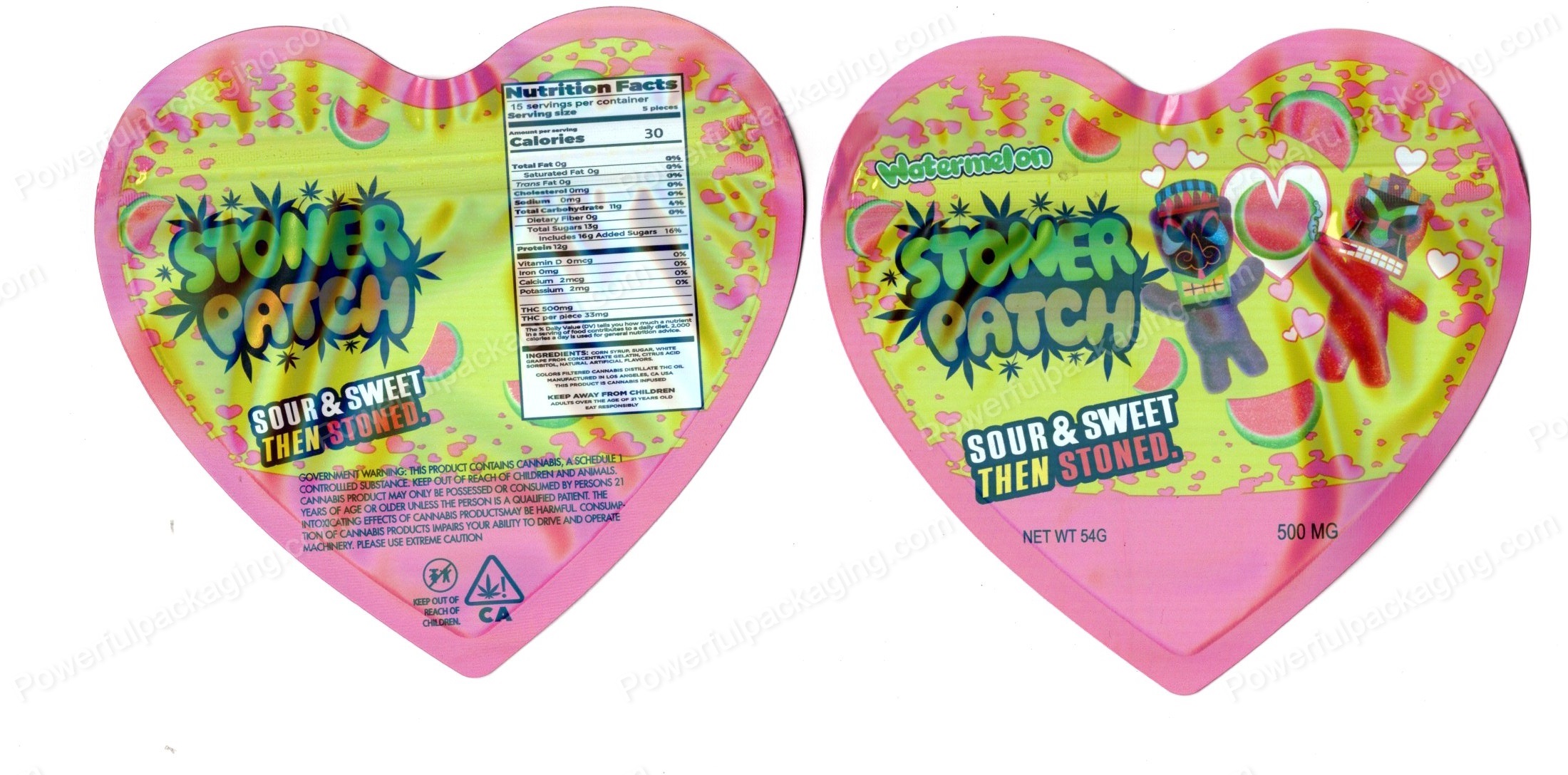 Stoney Stoner Patch Watermelon Dummies 3D Heart Shaped Mylar Packaging