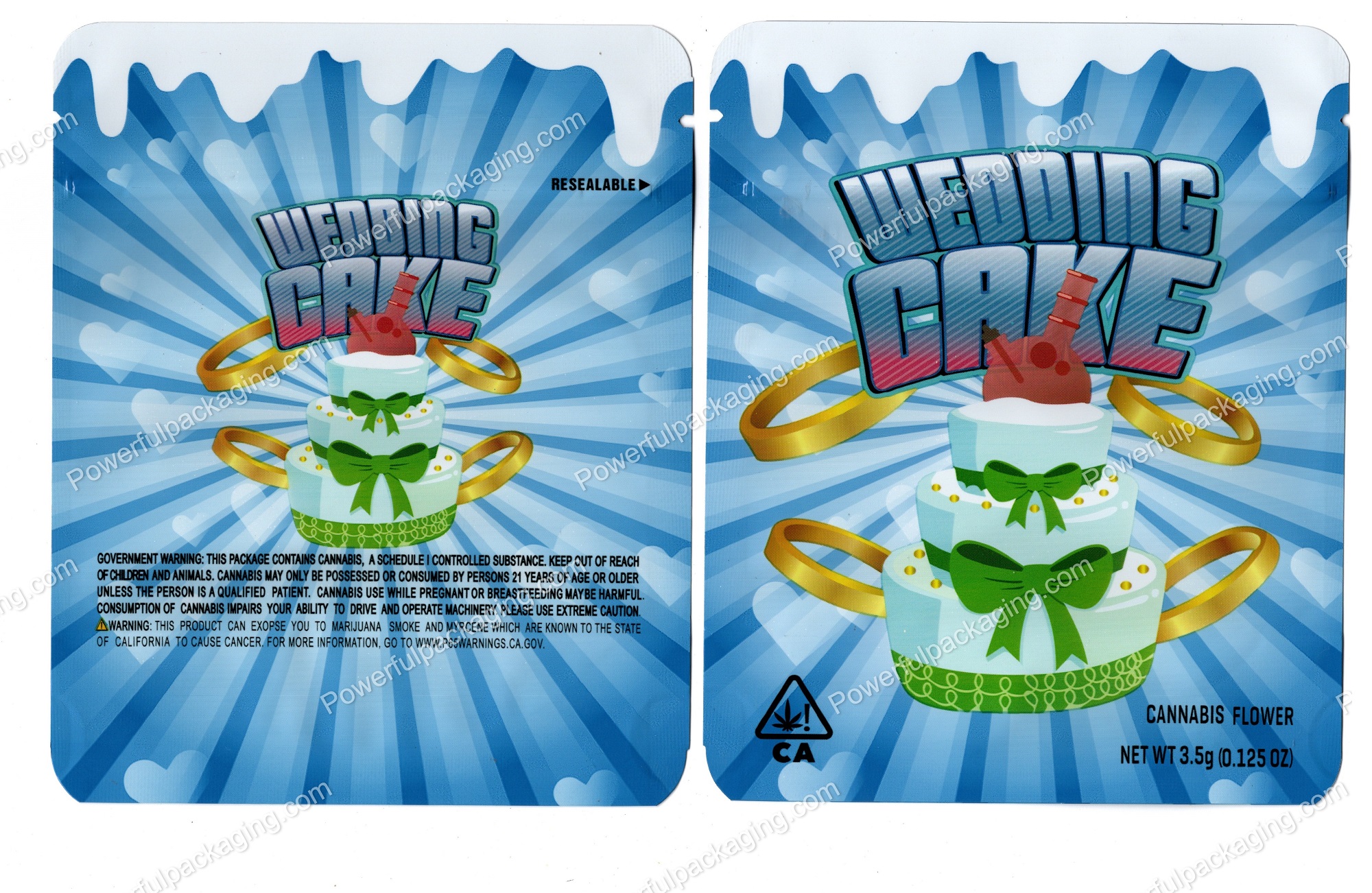 Wedding Cake (Generic Blue) Flower Packaging 3.5 Mylar Bag