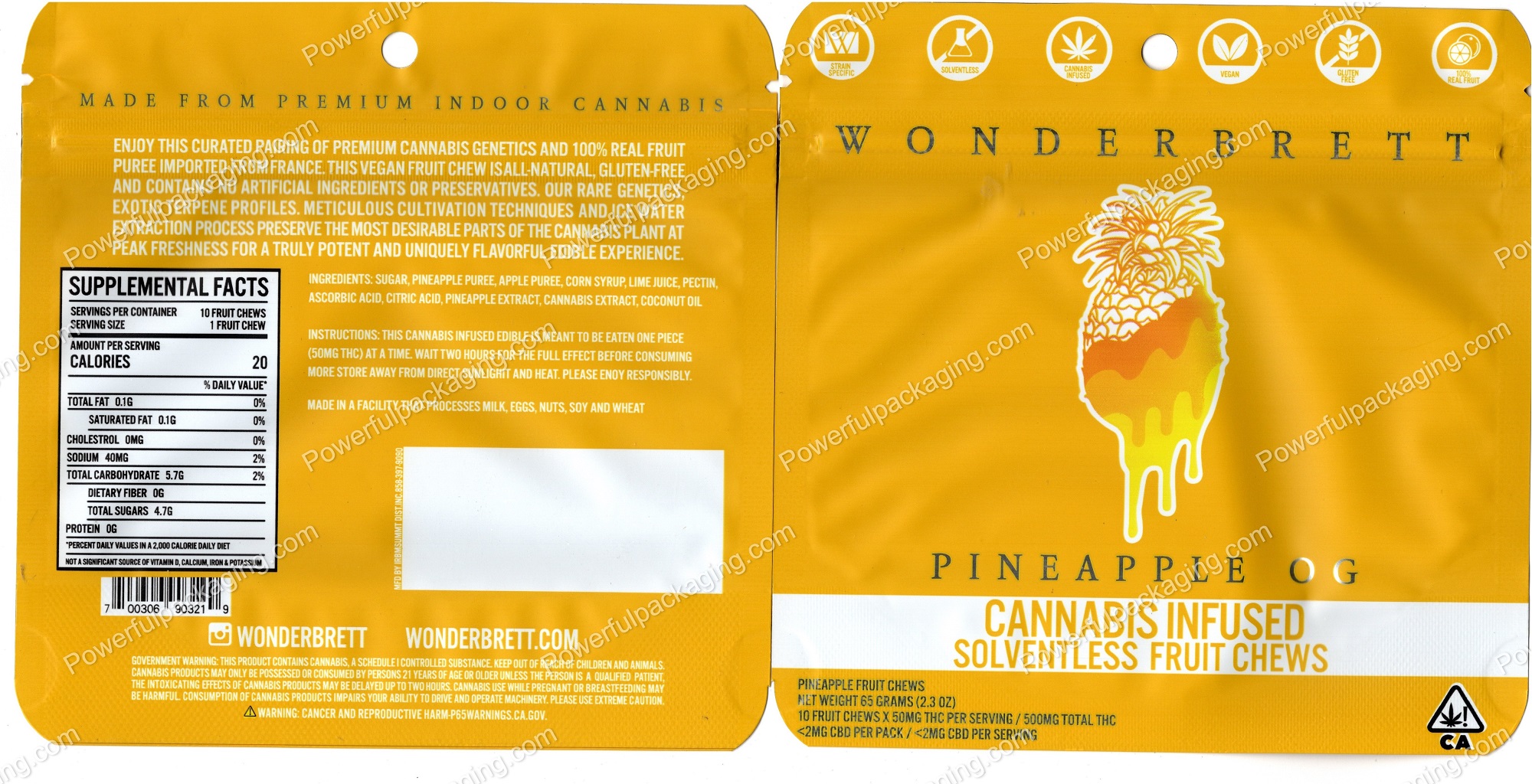 WONDERBRETT : Pineapple OG Cannabis Infused Solventless Fruit Chews Edible Packaging Mylar Bag