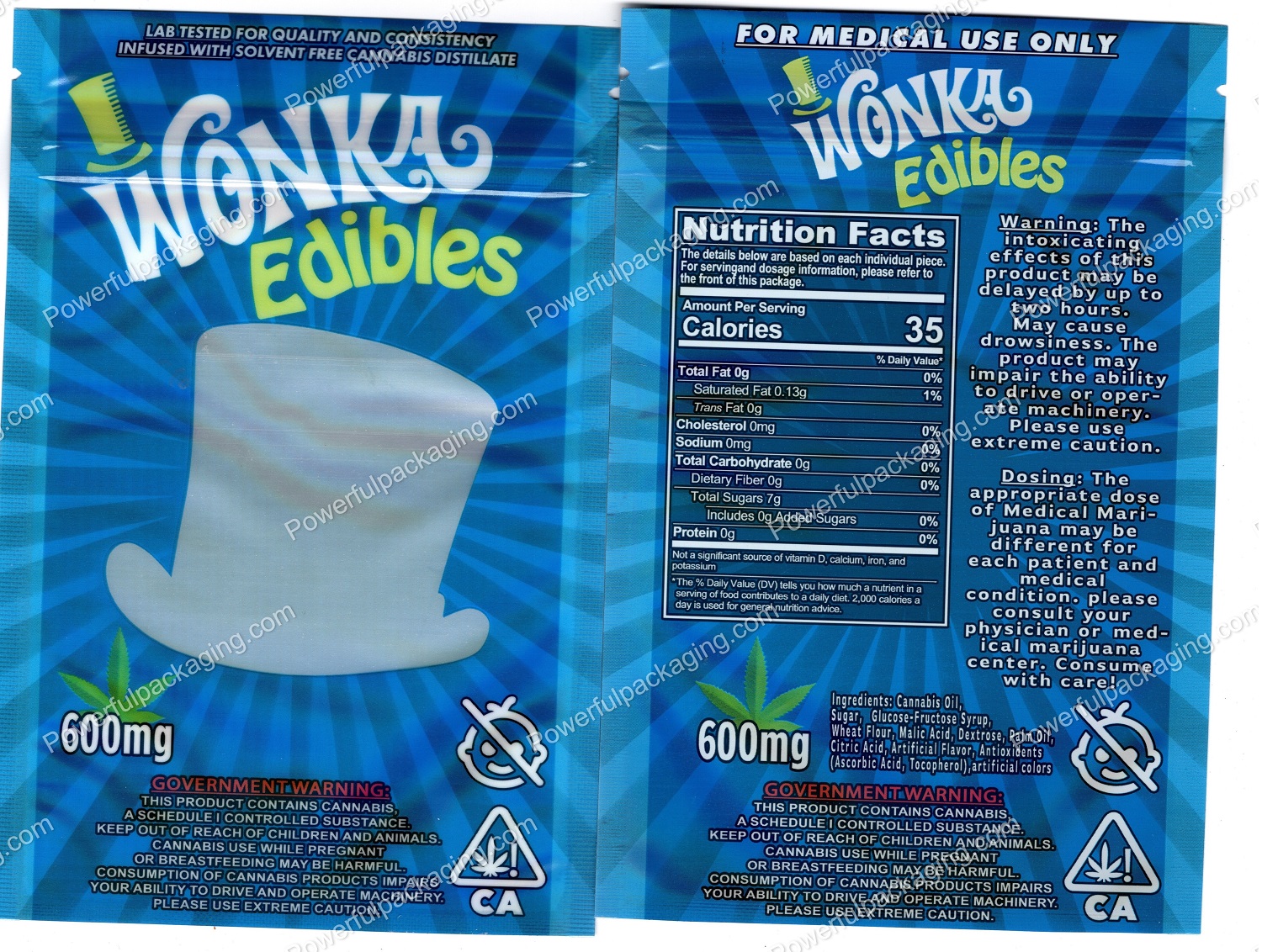 Wonka Edibles (Blue) 600mg Mylar (6x4in) Packaging